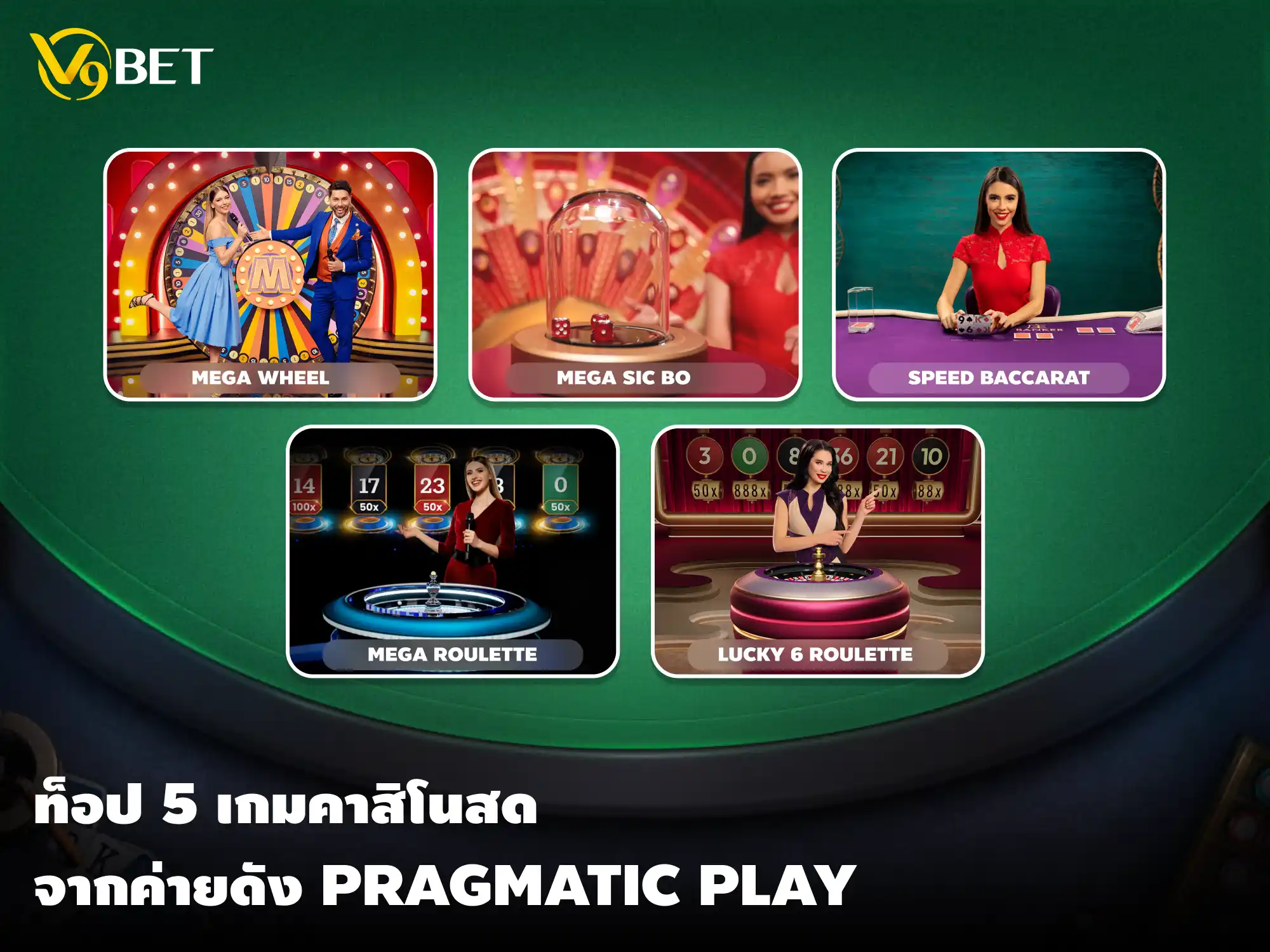 รีวิว 5 เกมคาสิโนสด มาแรงแห่งปี 2024 การันตีความน่าเชื่อถือจาก Pragmatic Play พร้อมวิธีสมัครสมาชิก V9Bet สำหรับมือใหม่ เปิดยูสเซอร์อย่างไรให้ได้เครดิตฟรีสูงสุด