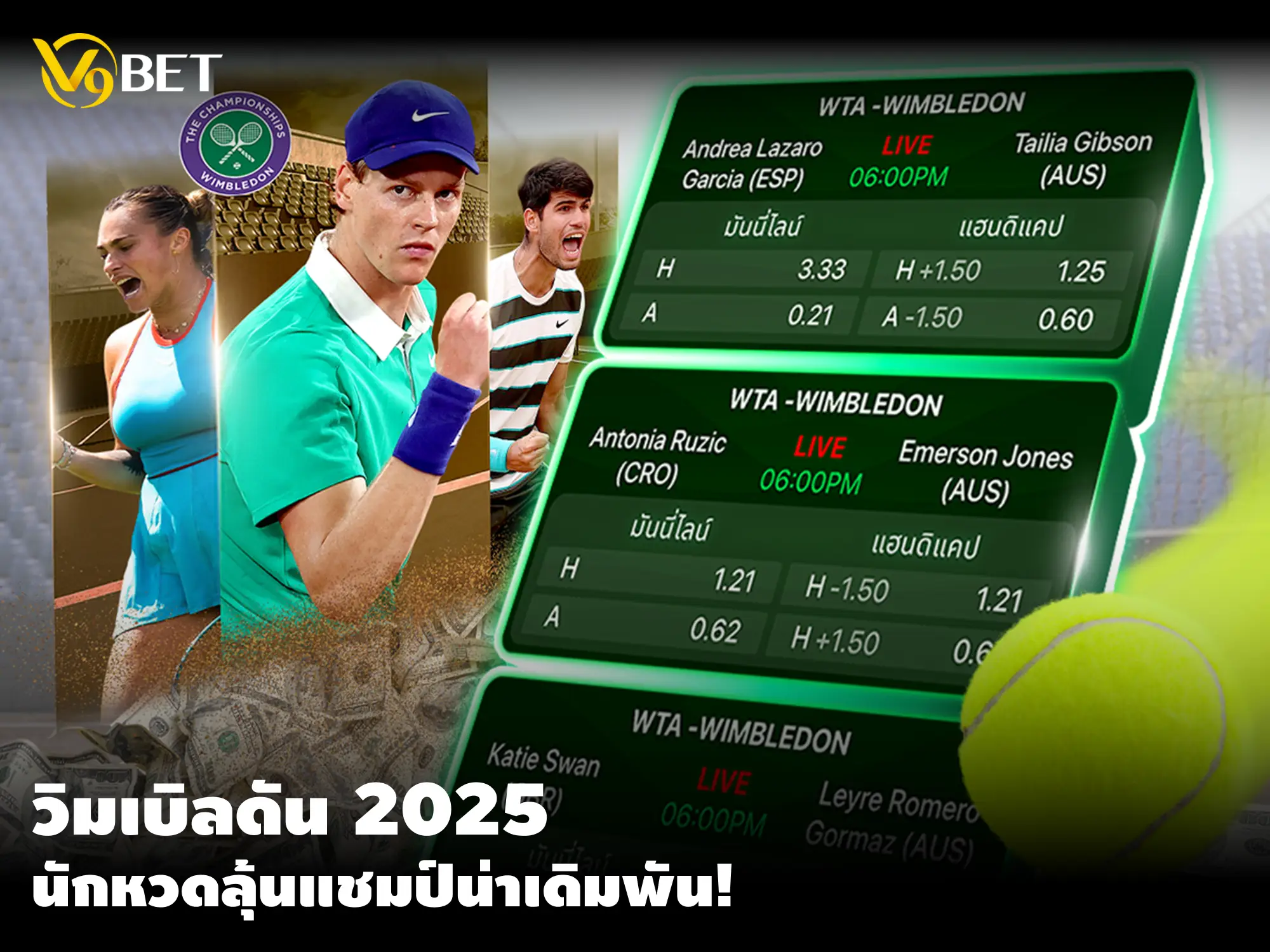 สำรวจความพร้อมก่อนลุยศึก เทนนิสวิมเบิลดัน แกรนด์สแลมรายการใหญ่ที่ผู้คนทั่วโลกรอคอย ใครจะเป็นแชมป์ชายและหญิงประจำปี 2025 วันนี้ V9Bet มี 6 ตัวเต็งที่น่าจับตามองมาฝาก